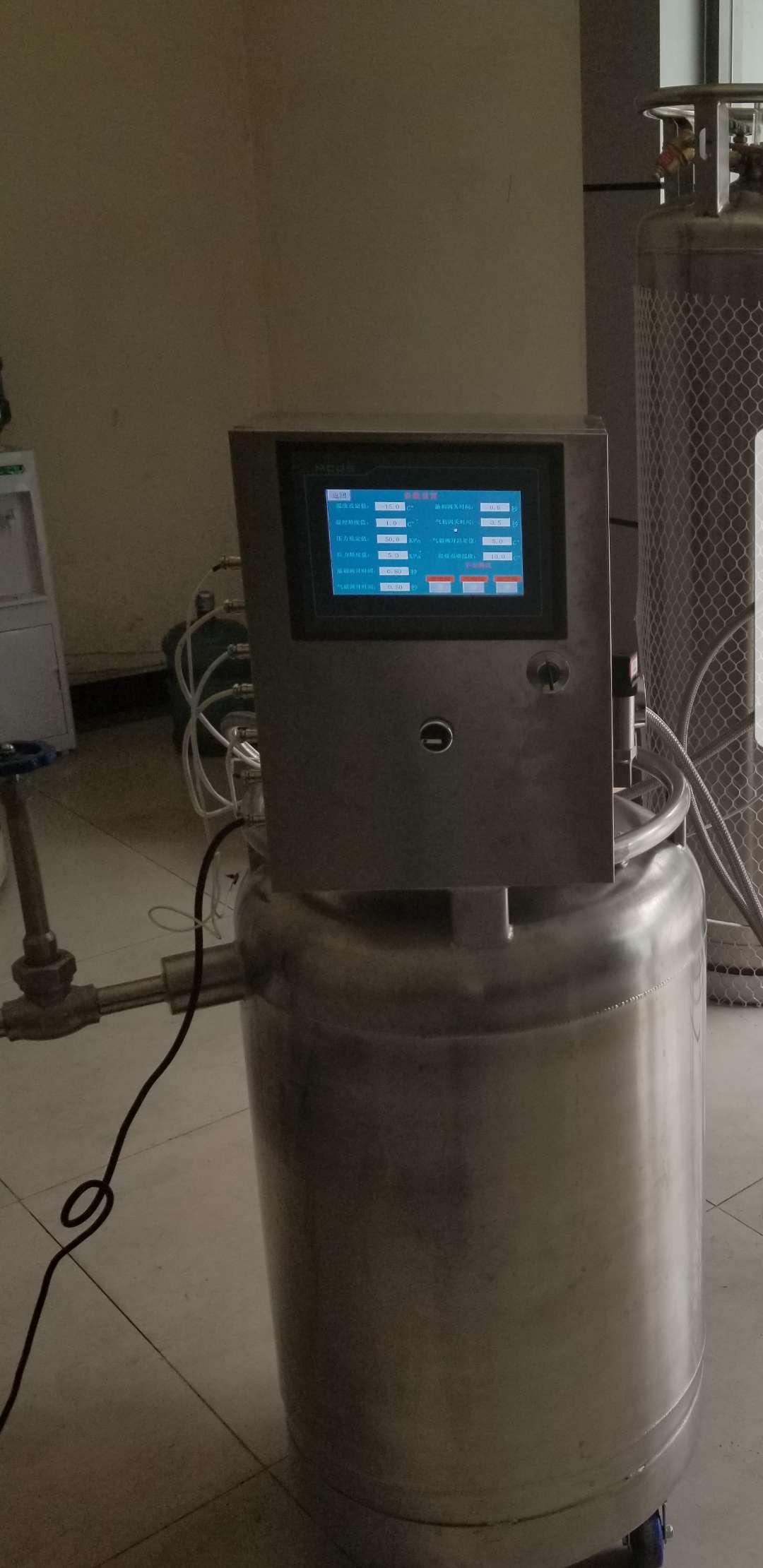 液氮罐低溫智能化控制系統由  閥門組件控制電磁閥、PLC編程器及智能化控制液晶大屏幕終端組成,功能可根據客戶需求,定制相關罐體自動增壓-出液-排氣的壓力及流量控制程序。